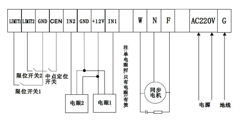 (一)外部接線,連接電源、電機(jī)電源線、限位開關(guān)線,按顏色和編號對號接線。